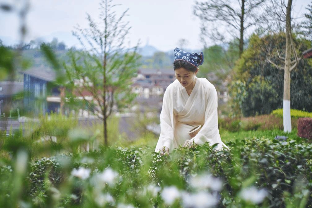 图:客人在雅安蒙顶山花间堂·茶马司体验采茶