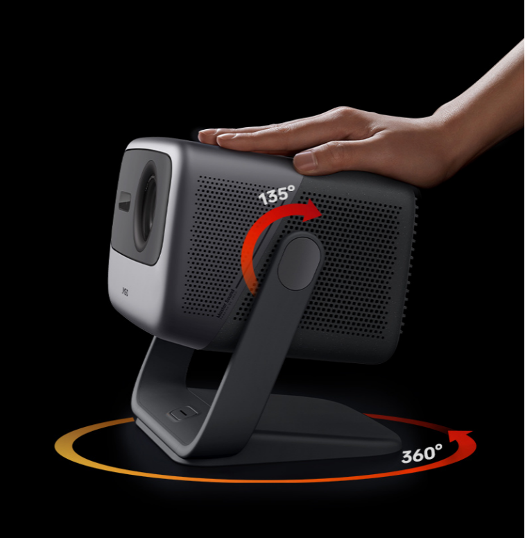 坚果投影首创的一体式算法云台,可以做到360°水平调节和135°无极悬停的一体式云台,让坚果N1S Pro 4K至臻版告别了传统投影的使用方式,不再需要固定安装就能轻松找到最合适的投影角度,再加上最新的云台算法,硬件与软件完美结合,即使将投影画面投射在天花板上,也可以轻松HOLD住,让用户真正做到观影躺平自由。
