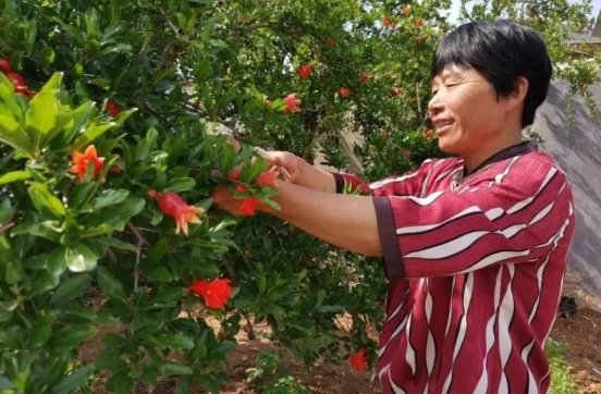 图一 枣庄市薛城区沙沟镇张庄村,火红的石榴花开遍了漫山遍野,果农喜笑颜开