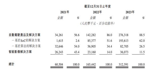这也使得黑芝麻智能的营业收入呈现出翻倍式增长,2021年至2023年,黑芝麻智能的营业收入分别为0.61亿元、1.65亿元和3.21亿元。与之相应的是毛利的增加——招股书数据显示,黑芝麻智能的毛利由2021年的0.22亿元增加至2022年的0.49亿元,并进一步增加至2023年的0.77亿元。其中自动驾驶产品及解决方案的毛利率由2021年的18.6%增加至2022年的24.2%。