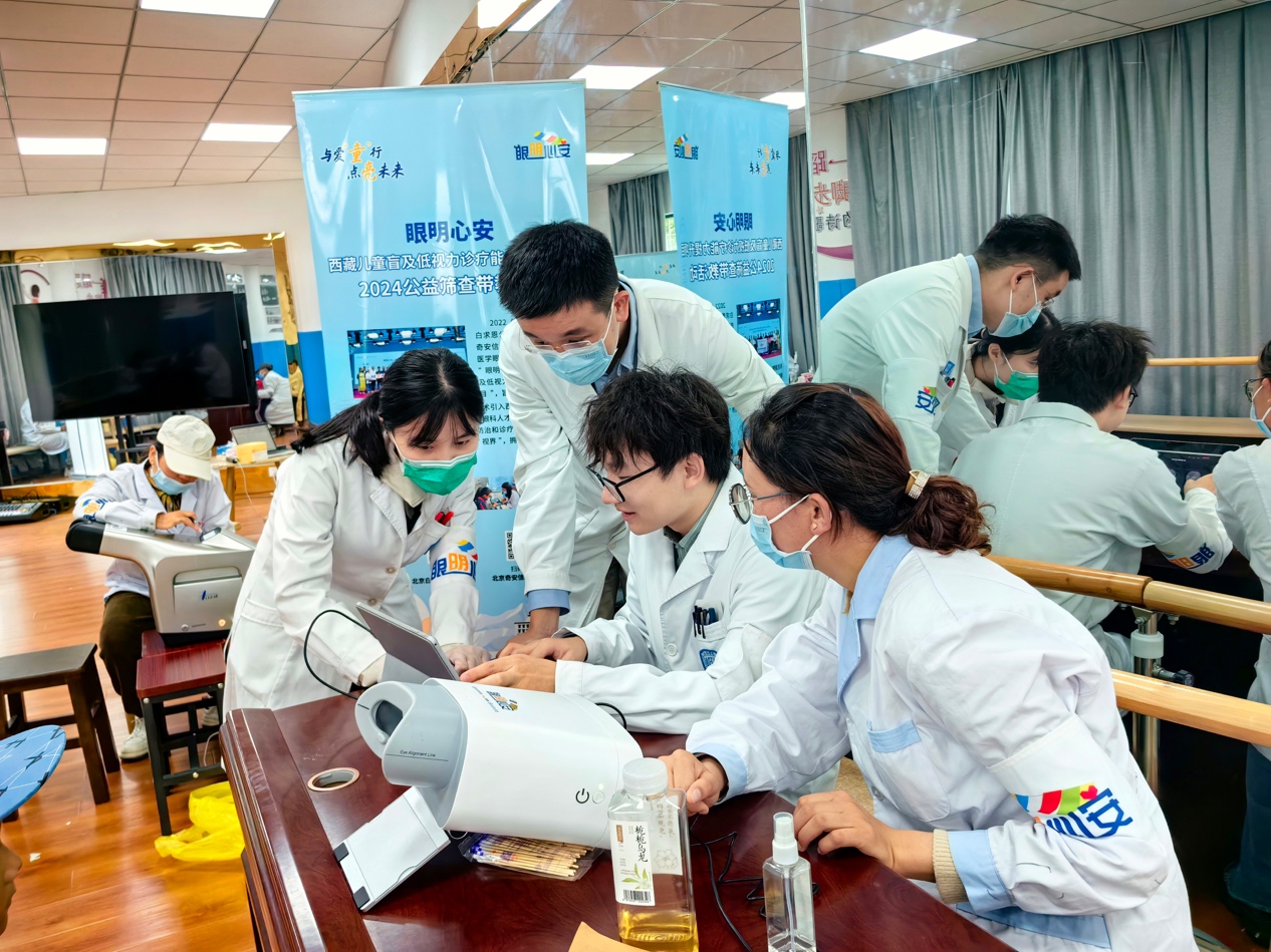 西藏,这片遥远而神秘的净土,雪峰巍峨,蓝天如洗。这里的孩子们,阳光般明媚,雪山般纯净,却在忍受着高海拔缺氧、强紫外线辐射所带来的眼部损伤,提高西藏地区儿童眼病诊疗水平,是一项意义深远且紧迫的任务。尽管西藏地区的眼科医疗条件在近年来有所改善,但眼科医疗仍处于极度“软硬兼缺”的情况,许多孩子无法得到及时有效的治疗,甚至一些眼病无法被及时识别和发现。为了持续提升西藏眼科医生眼病诊疗能力,满足西藏儿童及青少年基础眼健康需求,由北京白求恩公益基金会、北京奇安信公益基金会、北大医学眼科专家共同发起的“眼明心安·西藏儿童盲及低视力诊疗能力提升公益项目” 2024年再次扬帆起航(以下简称“眼明心安”项目)。