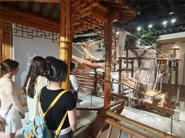 图为成员在丝绸博物馆参观 7月3日 辜晗喆/摄