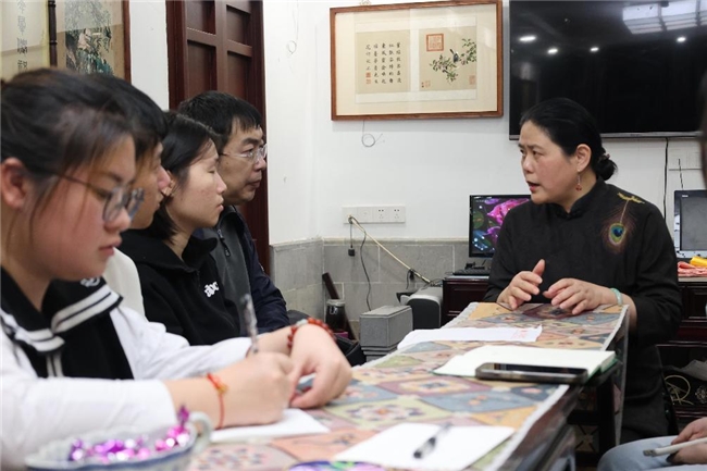 在体验期间,张雪老师还带着团队参观了绣娘的工作室。同学们亲眼见证了从简单的线条勾勒到复杂图案的逐渐成形,让同学们深感震撼。