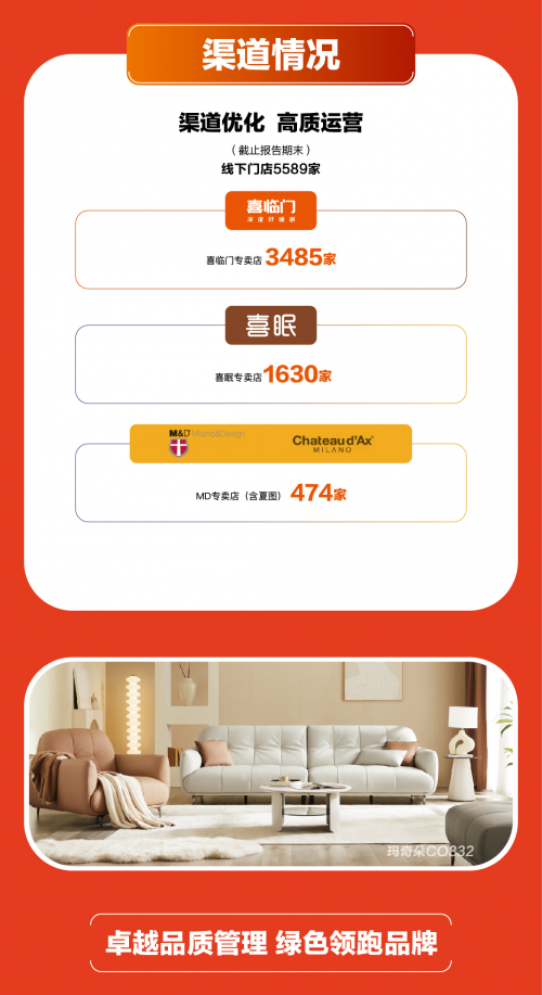2024年上半年,喜临门以高质量发展为主线,在国内海外多区域、线下线上多渠道齐发力。公司积极拓展海外市场,拉美、欧洲、一带一路等潜力地区的业务增长表现强劲。截至目前,喜临门、喜眠、M&D(含夏图)等品牌专卖店数量已达5589家,遍布全球多个国家和地区。线上新拓拼多多渠道,并通过短视频平台运营等手段进行客群渗透;酒店渠道则与头部企业合作,形成多层次、广覆盖的市场布局。