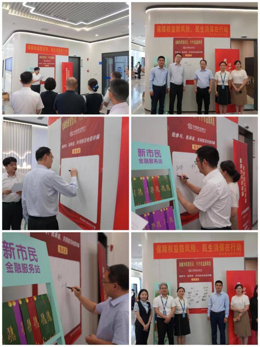 近日,民生银行苏州分行在分行营业部网点开展了一场主题为“共同防范电信诈骗”的签名仪式。此次活动旨在提高社会公众及行内员工的风险防范意识,从民生银行苏州分行做起,自上而下引导全行员工及广大消费者加强风险防范,加强金融安全教育。