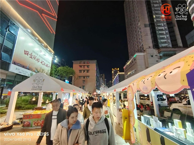 国庆期间,贵阳市南明区青云路智慧停车综合体热闹非凡,一场别开生面的 “贵阳 LOCAL 的一天国庆主题市集” 在此盛大举行,吸引了众多市民和游客前来参与。本次市集由华聚城主办,为国庆佳节增添了一抹浓郁的贵阳本土色彩。