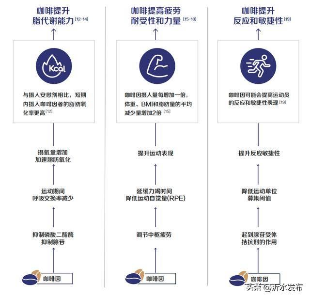 《运动医学百科全书》指出,在长距离跑步、自行车比赛等运动前,按体重比例摄入一定量的咖啡因,可增加耐力、提高运动表现。