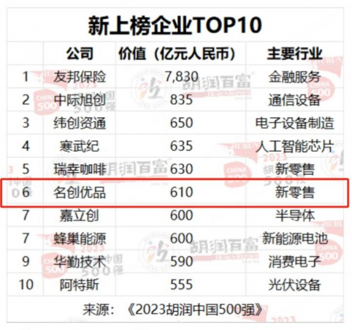 近日,胡润研究院发布了备受瞩目的《2023胡润中国500强》榜单,旨在揭示中国非国有企业中市值或估值最高的500家企业。在这份榜单中,名创优品MINISO凭借其卓越的市场表现和全球化的战略成果,成功跻身新上榜企业TOP10,成为中国品牌全球化发展的领跑者。