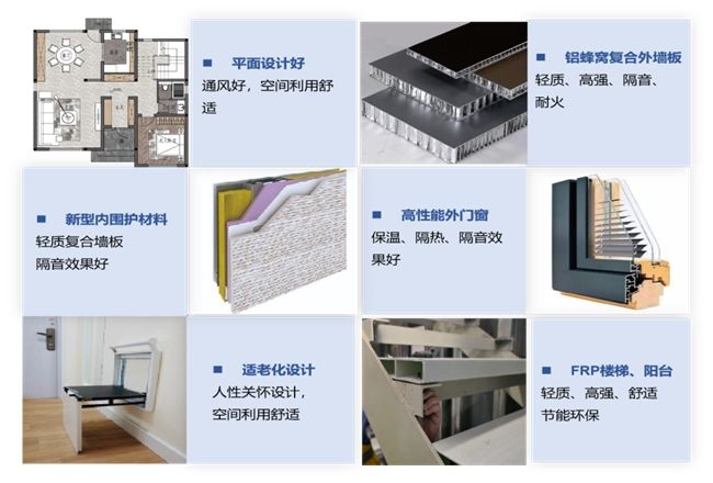 宜居房整合绿色低碳技术,采用自主研发的铝蜂窝复合外墙,应用气流组织设计、日照采光设计等技术。