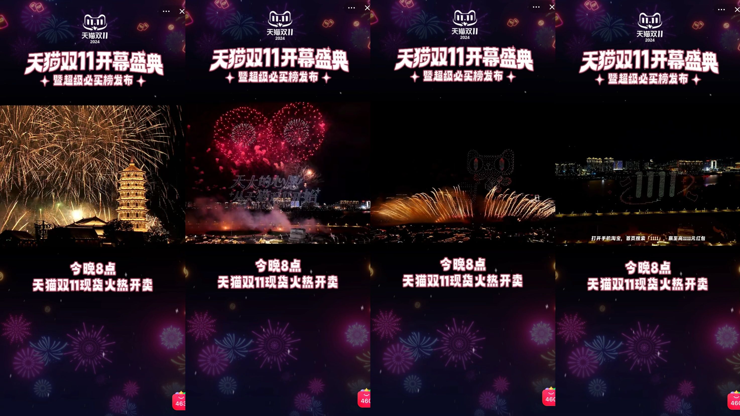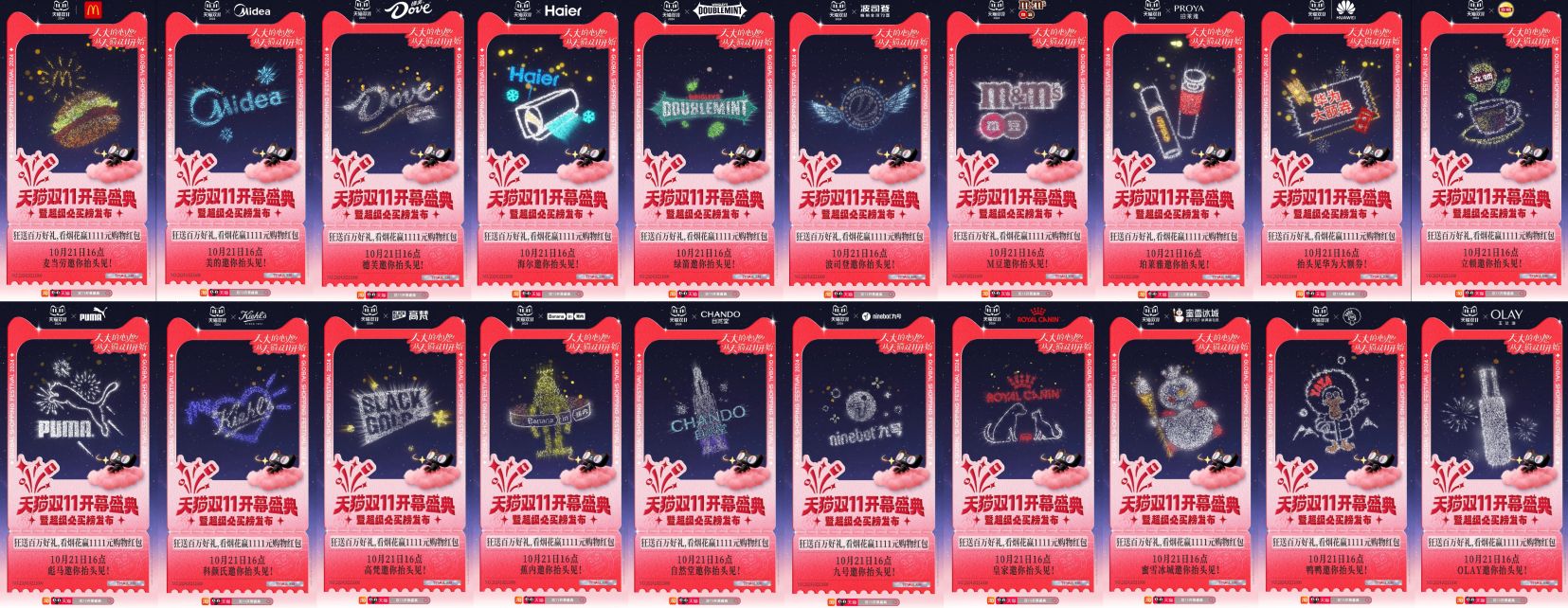 本次天猫双11开幕盛典携手超60个品牌,共同向广大消费者发出“抬头看烟花”的邀请,发布专属的品牌烟花邀请函,在线上共同点燃了绚烂的电子烟花。这一创意一改以往静态海报的形式,让品牌们在线上“百花齐放”,营造了更热闹的烟花氛围。增强品牌曝光度的同时,也深化了品牌与消费者之间的情感联系。