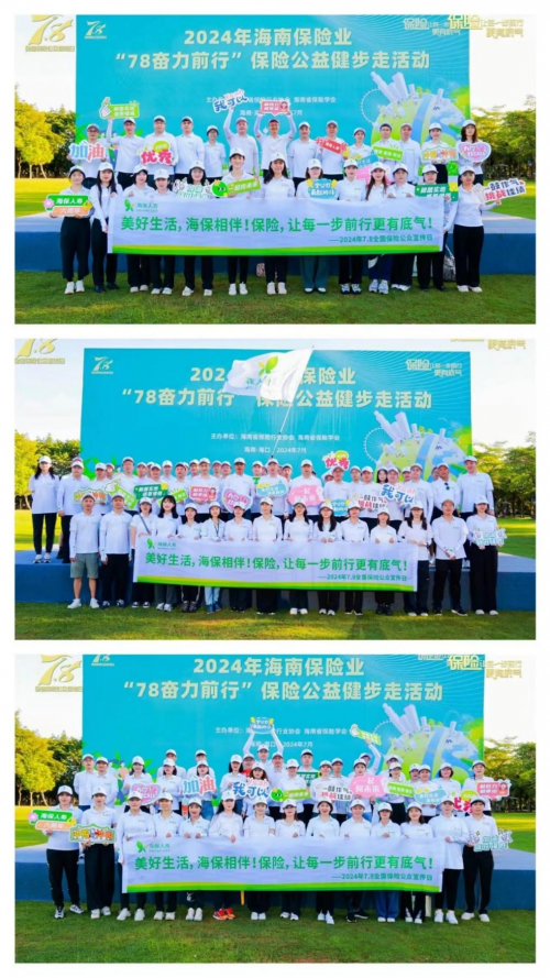 海保人寿积极响应中保协号召,带动客户及社会公众参加线下健步走活动,学习金融保险知识,并认领“普惠金融”类保险公益项目,为服务民生贡献力量。作为总部在琼保险法人机构,海保人寿全力配合、充分动员总、分公司员工参加海南省保险行业协会举办的2024年海南保险业“78奋力前行”保险公益健步走活动,展现青春靓丽的集体风采,激扬保险行业健康向上的正能量。