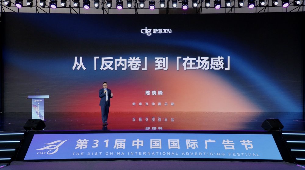 作为数字营销领域的积极探索者,新意互动在此次大会上展示了其在品牌跃迁领域的创新思考与实践案例。公司副总裁陈晓峰受邀参与主论坛,并发表主题演讲《从「反内卷」到「在场感」——以「在场感」实现品牌跃迁》。在演讲中,他以“小西天景区因游戏爆火”作为切入点,通过多个实践案例剖析,阐述了品牌营销在市场竞争加剧背景下的转型方向和应对策略,为品牌如何在当下市场环境中通过“在场感”实现跃迁提供了全新解法。