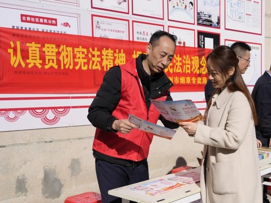 普法志愿者用通俗易懂的语言向社区居民讲解《中华人民共和国宪法》《中华人民共和国民法典》《中华人民共和国烟草专卖法》等法律法规,增强社区居民宪法意识。组织法律顾问和公司律师前往共建社区提供法律服务,围绕社区居民比较关注的“劳动合同签订”“民间借贷”等法律问题,提供专项法律咨询服务,同时为社区居民送去法治电影,以群众喜闻乐见的形式普法法律知识,增强社区居民依法维护自身合法权益的意识,引导他们形成遇事找法、办事依法法治观念。