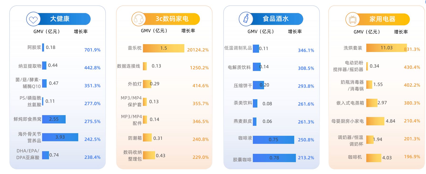 在大健康领域,纳豆提取物、辅酶Q10等产品呈现出巨大的市场潜力;茶饮料、燕麦麸皮等细分品类也迎来高速增长。另一方面,尽管出生率有所下降,但由于品类消费升级、产品创新、健康意识提升等多种因素推动,母婴小家电如调奶器、奶瓶消毒器等市场需求持续升温。此外,咖啡文化的流行和性价比消费行为的转换也带动了咖啡液及胶囊咖啡的热销。