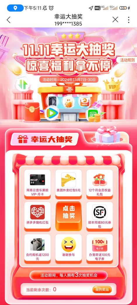 除了购机优惠外,安徽联通运营团队还特别注重用户关怀和服务升级。他们推出了“幸运大抽奖”活动,为用户带来了百元电子券、外卖红包、会员权益等多重好礼。这些奖品不仅为用户的生活增添了乐趣,更体现了联通对用户的真诚回馈。