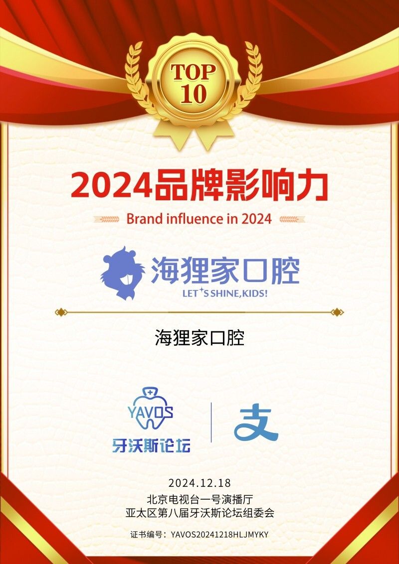 海狸家儿童口腔连锁荣获亚太区第八届牙沃斯会议数字化品牌影响力TOP10