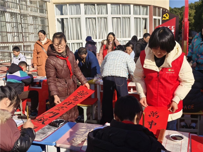活动现场,翰墨飘香、红纸翻飞,来自池州市妇女儿童活动中心的小书法家们在老师的悉心指导下挥毫泼墨,“迎春接福年年好,招财进宝岁岁新”“梅开寒枝报春信,雪压松梢送岁寒”一幅幅蕴含着美好寓意的对联,引来社区居民驻足欣赏。