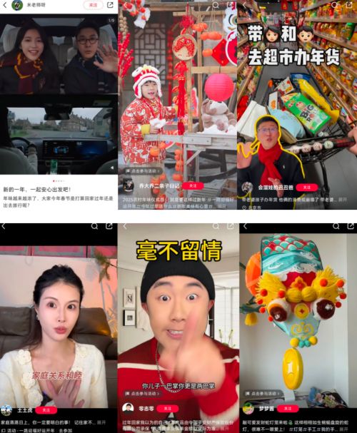 有人晒出过年自驾回家计划,也有人提前晒出孩子的拜年ootd;手工达人们自制春节仪式感,省钱达人演示年货购物攻略;有人传授家庭和睦的团圆技巧,也有人送上“过年怼亲戚实用教程”。
