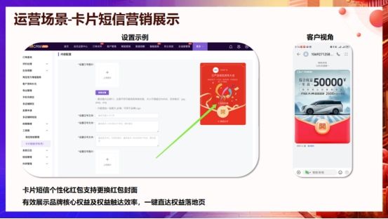 • AI外呼+卡片短信:针对沉默会员(RMF低频人群),通过AI外呼话术(如“您的积分即将过期,点击兑换专属年货礼”)及图文卡片短信(支持新年红包封面自定义),唤醒率提升40%。