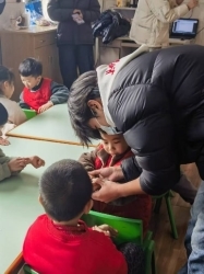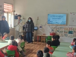 次日清晨,我们来到淄博市桓台县城东村。在村领导张芬的带领下,我们走进桓台县新城镇博文幼儿园,活泼可爱的小朋友们正在欢声笑语中学习玩耍。我们首先进行了一场别开生面的急救知识课堂。通过生动有趣的讲解实操演示,孩子们学会了如何正确应对突发伤害、意外事故的发生以及掌握基本的自救互救方法,并为孩子们讲述中医文化的有关知识,例如讲神医华佗的故事,日常小朋友们用药的种类,身边的中药药材等。