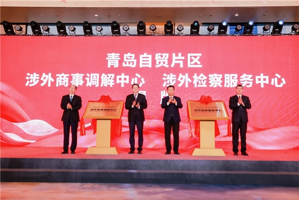 会上,青岛自贸片区“涉外商事调解中心”“涉外检察服务中心”揭牌。以护航外向型企业高质量发展为着力点,涉外商事调解中心将联合仲裁机构、外企联合会等机构提供涉外商事多元调解、巡回审判、法律指导等服务;涉外检察服务中心发挥刑事检察、民事检察、行政检察、公益诉讼检察“四大检察”融合职能,集中办理涉外检察案件,实现一体化服务保障等功能。两个中心的揭牌,将进一步提升“法润自贸”品牌,丰富法律会客厅“窗口化、综合性、一站式”的多维服务网络,打造公共法律服务新高地,助力企业提升国际竞争力。