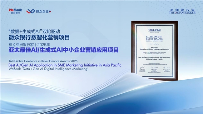《亚洲银行家》是金融服务行业领先的战略信息提供者,其主办的亚洲银行家奖项评比规则遵循国际最高标准,专业性强、评审公正权威、覆盖范围广,受到金融界和行业研究机构一致认可,素有“金融界奥斯卡”的盛誉,影响力辐射全球。据介绍,今年《亚洲银行家》首次聚焦生成式AI在中小微企业营销领域的应用价值并设置单独奖项,微众银行首次荣获这一亚太地区级别单项奖,代表了其在企业金融数字化营销领域的领先。主办方评价道,“微众银行在理解并满足不断变化的中小微企业客户需求、客户体验以及数字化转型和AI应用方面表现卓越,推动了效率和客户互动,将金融深度融入客户体验,超越了地区及本地同行。”