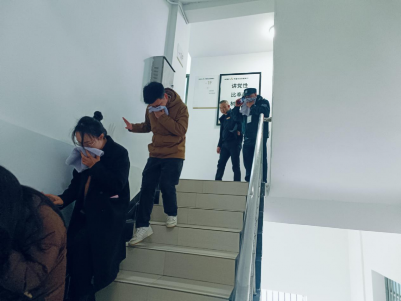 实战演练 提升应急能力。理论培训结束后,全体人员随即进入实战演练环节。随着模拟火灾警报的响起,支行立即启动应急预案,应急小组迅速就位,组织员工按照预定路线弯腰、捂鼻、贴墙有序撤离至安全区域,全程用时仅1分30秒,展现了高效的应急反应能力。在灭火实操环节,消防专家现场示范了水基灭火器、灭火毯等器材的正确使用方法,参训员工逐一进行实操演练,确保人人过关。