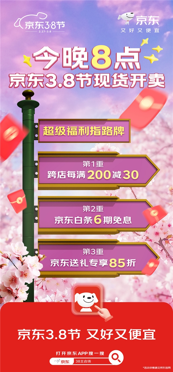 即日起,打开京东APP搜索“38主会场”,提前加购心仪好物。2月27日晚8点,现货准时开售!白条6期免息叠加跨店满减,电脑手机享国家补贴,美妆个护满赠加码,这个春天,让京东承包你的品质生活。好物不等人,优惠不过夜,快来感受“又好又便宜”的购物体验!