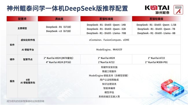 面对挑战, 2025年2月28日,神州鲲泰问学一体机DeepSeek版在第三届北京人工智能产业创新发展大会上正式发布,以创新的技术能力和行业洞察,为企业提供了高性价比的智能化升级方案。通过精准解决部署痛点,并提供基于昇腾的智算服务,助力企业将AI技术深度融入核心业务,真正实现降本增效,成为智能时代破局的关键力量。