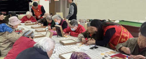 为更好通过寓教于乐的方式提升金融教育宣传效果,送去关怀与祝福,志愿者们还带领老人们制作了五谷丰登拼贴画。老人们根据教学,结合自己的创意,将五谷杂粮巧妙地拼贴成一幅幅寓意美好的福字画,志愿者们与老人们亲切交流,细心帮忙,活动现场洋溢着欢声笑语。