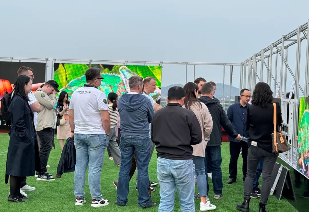 值得关注的是,艾比森在活动中首次面向全球客户开放了户外LED低碳省电展厅,邀请客户沉浸式体验其核心技术与产品优势。展厅集中展示了艾比森在户外LED显示屏材料研发、散热设计及智能控制等领域的创新成果,包括动态节能技术、高亮度显示解决方案及环保制造工艺,吸引了众多客户驻足交流。