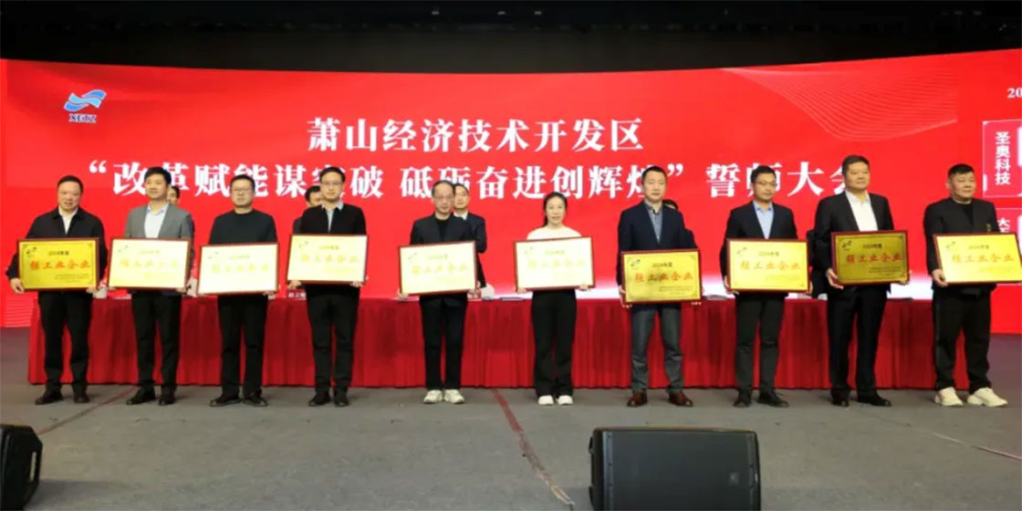 近日,萧山经济技术开发区召开“改革赋能谋突破 砥砺奋进创辉煌”誓师大会中,会上表彰了2024年萧山经济技术开发区的突出贡献企业、强工业企业、强服务业企业、强科技创新企业、强建筑业企业等优秀企业。圣奥科技凭借其在智能制造、品牌建设、技术创新、社会责任等等领域的突出表现,一举斩获“萧山区突出贡献企业”“萧山区强工业企业”等多项荣誉称号。