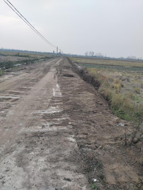 (图为石盘咀村机耕路硬化后再次拓宽的施工现场)