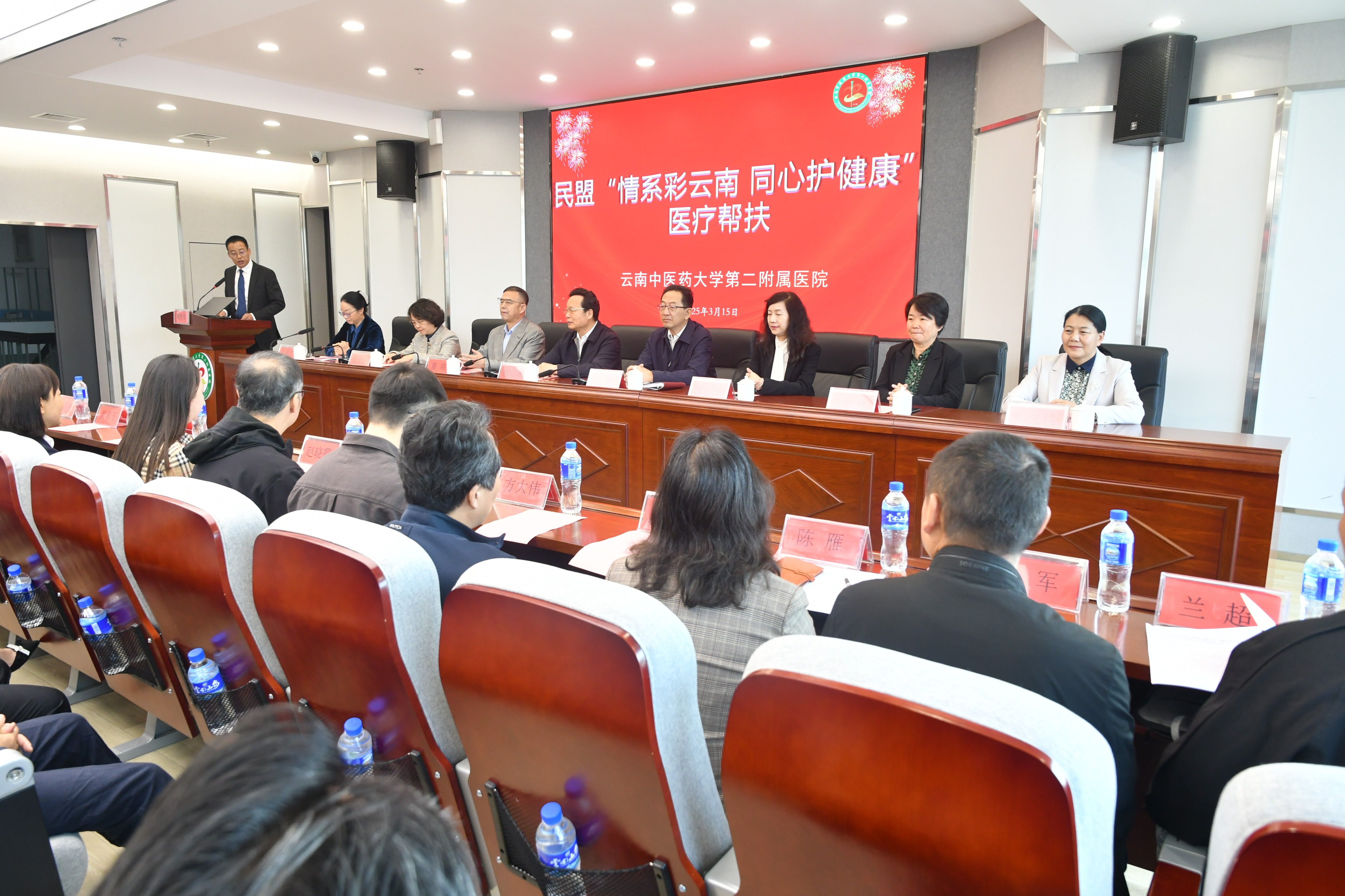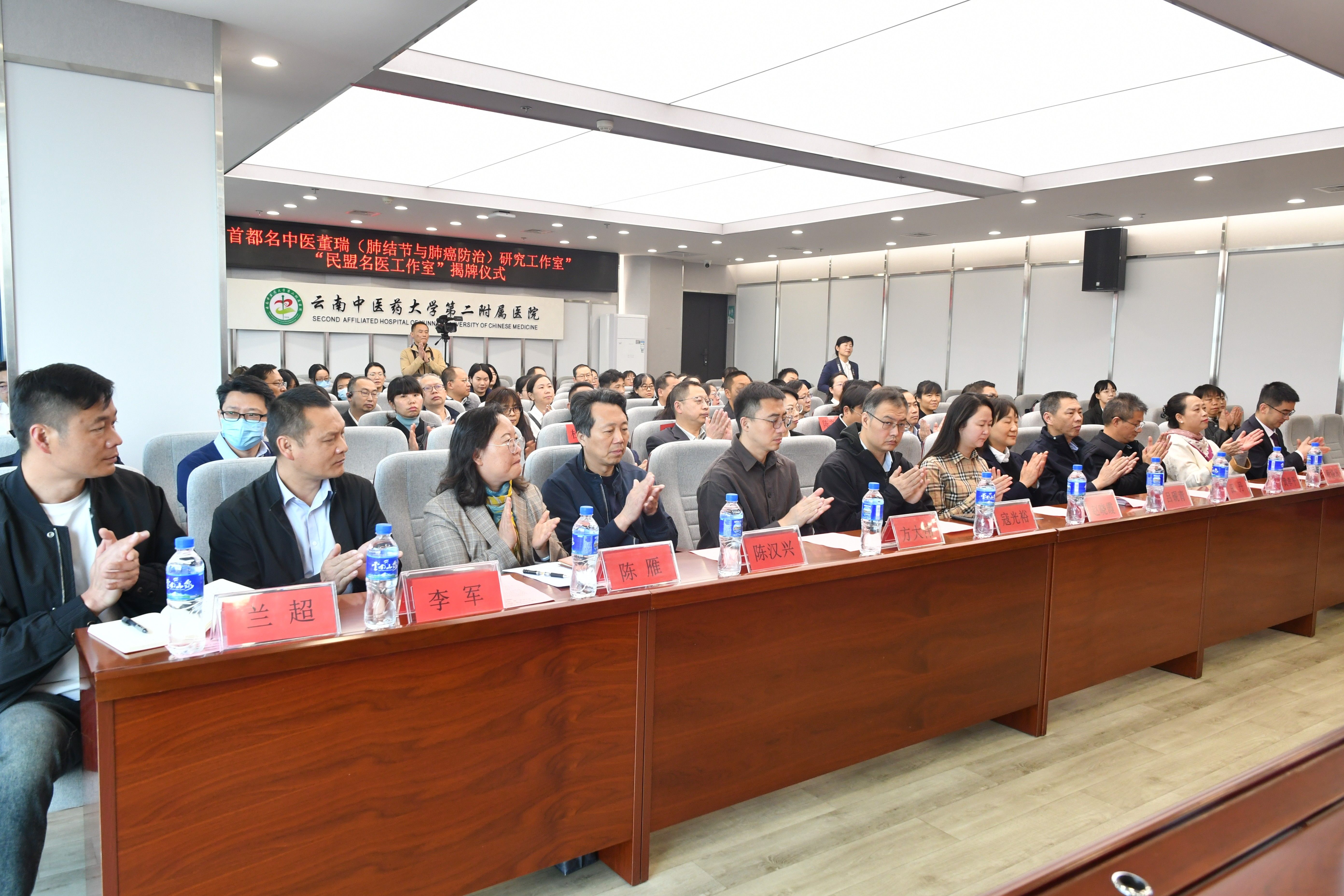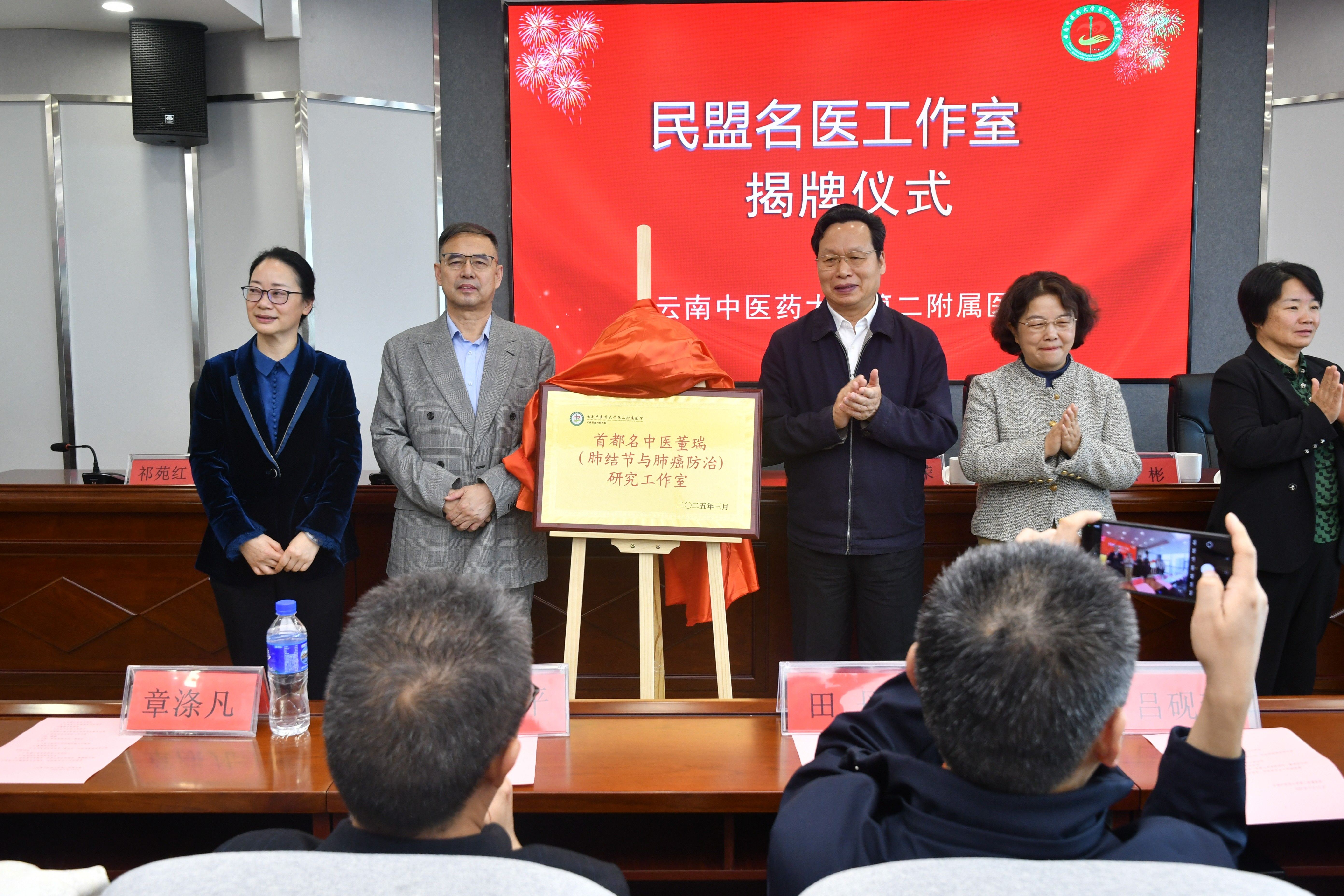 2025年3月15日上午,在民盟中央、民盟云南省委支持下,首都名中医董瑞“肺结节与肺癌防治”研究工作室在云南中医药大学第二附属医院举行了揭牌仪式。全国人大常委会委员、民盟中央副主席谢经荣,全国政协常委、云南省人大常委会副主任、民盟云南省主委徐彬,民盟中央社会服务部部长高育红,云南省政协副秘书长、民盟云南省委专职副主委李江虹,云南省卫健委副主任、中医药管理局局长周红梅,云南中医药大学党委副书记祁苑红、副校长邰先桃等领导出席。云中二院党委书记唐柱生主持揭牌仪式。首都名中医董瑞、云南中医药大学党委副书记祁苑红、云南省中医药管理局局长周红梅,民盟云南省主委徐彬分别致辞。