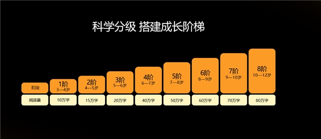 叫叫阅读拥有完善的分级体系,从幼儿园到小学,总共8个阶段的内容,针对不同年龄段的孩子提供不同的阅读内容及阅读方式。叫叫阅读的“精读、精练、精讲、精测、精评”五步阅读法,为孩子搭建学习的阶梯,让孩子更有效地提升阅读能力。