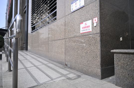 在探访中,记者发现华夏银行郑州分行营业厅大门外的无障碍通道靠墙处,有一个暖心的提示按键。记者试按了一下,几分钟后华夏银行一名工作人员出来问有什么需要帮助,称她们有专人轮流值班,只要听到呼叫器响起,工作人员就会出来帮助需要去银行办理业务的市民。