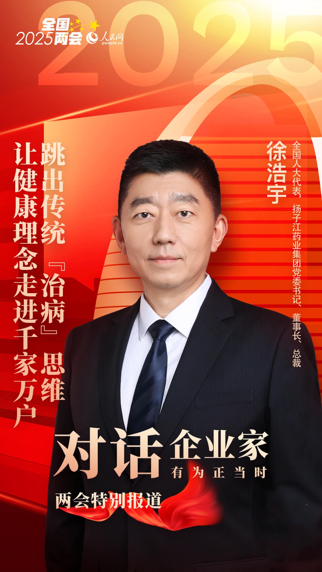今年全国两会期间,“健康管理”“体重管理年”等话题引发热议。“国家大力倡导以人民健康为中心,这就要求医药健康行业的企业家必须跳出‘治病’的传统思维,一切发展都要以人民健康为中心,不仅要勇闯生物药、基因治疗等‘无人区’,也要关注老百姓的健康生活。”近日,全国人大代表,扬子江药业集团党委书记、董事长、总裁徐浩宇在做客人民网《对话企业家》两会特别节目时表示。