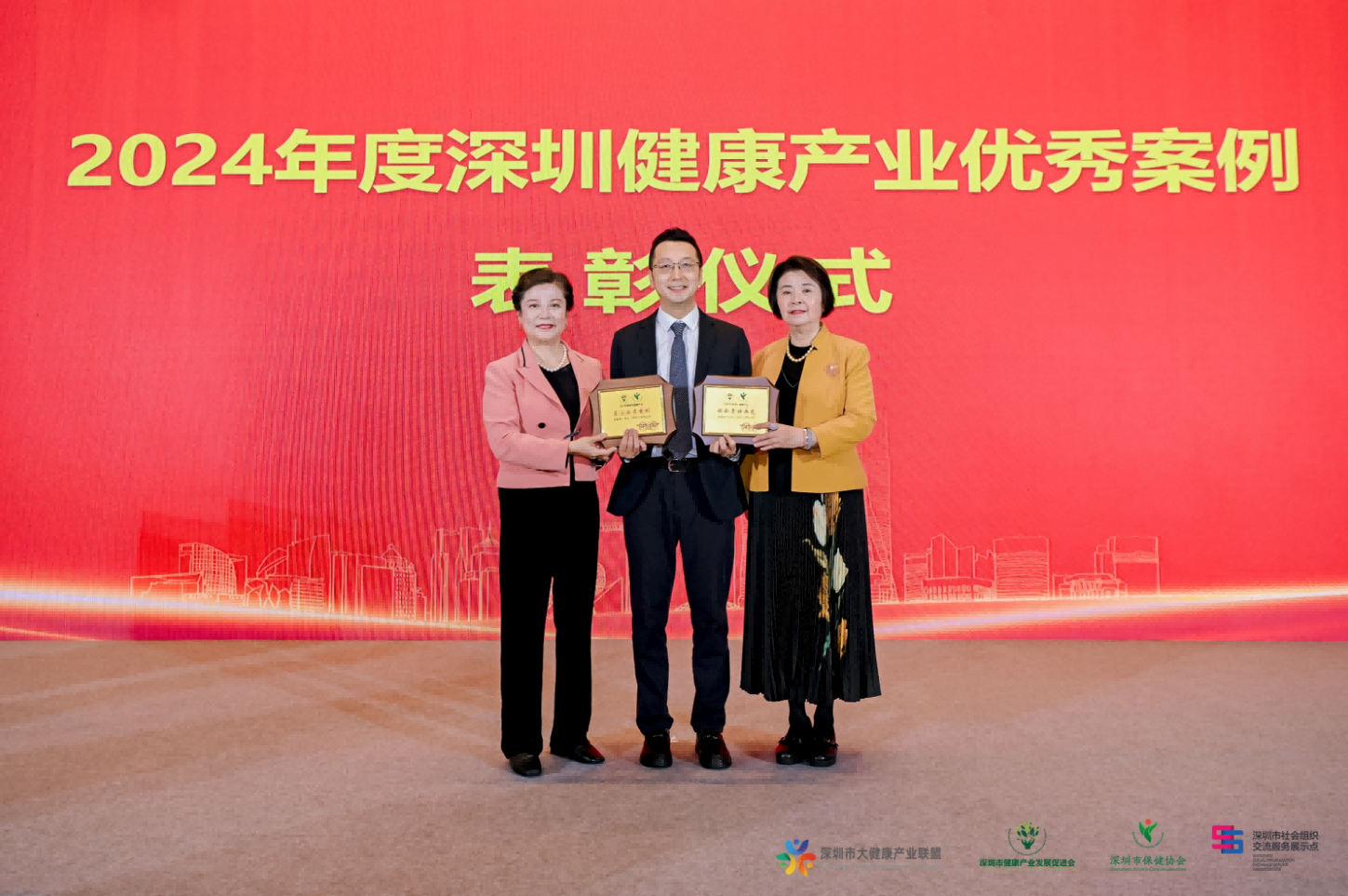 深圳市健康产业类行业协会联合党委第一书记王夏娜、深圳健康产业发展促进会执行会长黄鹤为海基集团颁奖