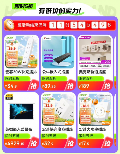 除快充插座外,活动会场中还有公牛嵌入式插座、奥克斯轨道插座、宏碁快充魔方插座等更加丰富的产品,这些产品在形状设计、实用功能方面各有特色,不仅能满足消费者的日常实用需求,还能显著改善居家环境的美观程度。日常有观影需求的消费者还可在活动中入手英微嵌入式幕布,在超大画面视觉呈现的基础上,这款产品的隐藏嵌入式安装还能让客厅空间变得更加时尚美观。而在购物福利方面,上述产品均可享受限时5折优惠,需要入手的消费者现在即可行动。