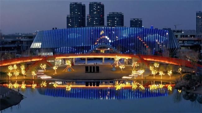 探索馆位于汉江生态城核心区域,毗邻鹿鸣公园。其独特的“汉水涟漪”建筑造型由2000块全景曲面玻璃幕墙打造,巧妙融合了“孔明灯”文化意象与“和氏璧”的美学理念,整体形象宛若镶嵌在汉江畔的一颗璀璨“海洋之心”,已成为当地新晋网红打卡地标。