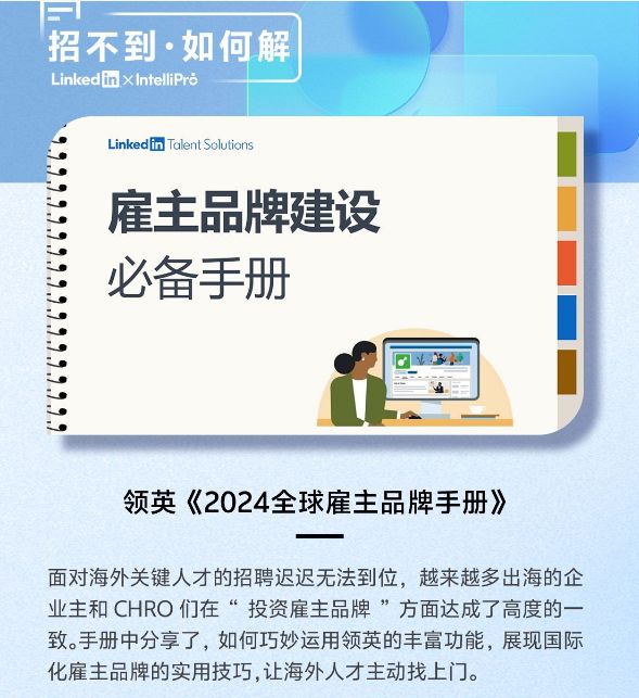 面对海外关键人才的招聘迟迟无法到位,越来越多出海的企业主和 CHRO 们在“投资雇主品牌”方面达成了高度的一致。手册中分享了,如何巧妙运用领英的丰富功能,展现国际化雇主品牌的实用技巧,让海外人才主动找上门。