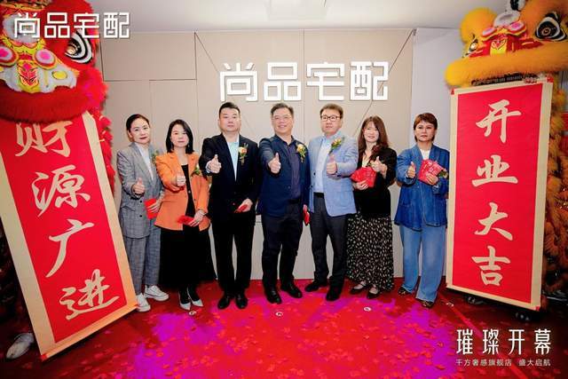 活动最后,成都市家具行业商会会长古皓东、尚品宅配总经理李嘉聪、尚品宅配副总经理齐向飞、尚品宅配成都分公司总经理邹贝、尚品宅配集团配套品事业部总经理桂娅婷、尚品宅配川渝藏总经理王慧芬、成都锦尚置业有限公司总经理马稚新等共同为门店揭幕剪彩。