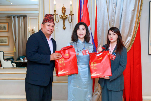 玉生堂副总裁王晓丽代表公司向驻华外交官赠送健康伴手礼