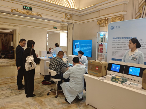 论坛期间,玉生堂设置的智能中医体验区成为参会嘉宾关注的焦点。与会嘉宾亲身体验了“中医AI诊断机器人”“经络检测理疗仪”“穴位疼痛理疗仪”等设备,系统通过高清成像、生物信号分析及AI算法,几分钟内生成包含体质辨识、健康预警和调理建议的个性化报告。他们纷纷赞叹,通过简单几项检测,就能分析身体内脏的状态,用生物电模拟针灸、按摩、推拿的玉生堂智能理疗设备,能够迅速缓解疲劳和关节疼痛,现代化中医太神奇了。来自非洲、中东等地区的外交官们表示,该系统“将复杂的中医诊断可视化,令人惊叹”,并期待引入本国应用。