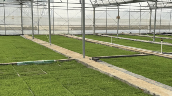 育苗大棚里的水稻秧苗