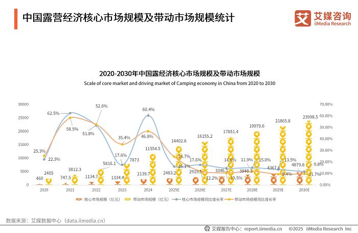 在人们生活水平和健康意识持续提升的当下,户外运动热潮正席卷而来。登山徒步、环海骑行、草地露营等户外活动,吸引着越来越多的人投身其中。据统计,全国户外运动参与人数已超过4亿人次。与此同时,政策利好也为户外运动产业注入了强大动力。国家体育总局等八部门印发的《户外运动产业发展规划(2022-2025年)》明确提出,2025年中国户外运动产业总规模超过3万亿元。其中,露营经济发展迅猛。iiMedia Research(艾媒咨询)数据显示,预计2025年中国露营经济核心市场规模达到2483.2亿元,带动上下游产业规模超1.4万亿元。