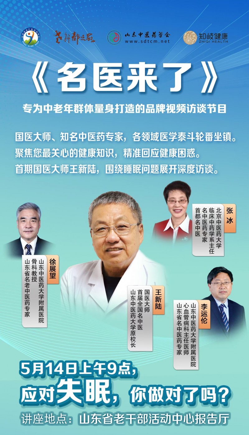 5月14日,由山东省老干部活动中心、《老干部之家》杂志社、山东中医药学会联合主办,知岐健康产业集团协办的《名医来了》大型视频访谈节目启动仪式暨首播活动在济南举行。国医大师、山东中医药大学原校长王新陆教授,山东省老干部活动中心主任牟洋,山东中医药学会会长孙春玲,山东出版传媒股份有限公司总经理申维龙,知岐健康产业集团董事长管庆磊等嘉宾共同启动节目。