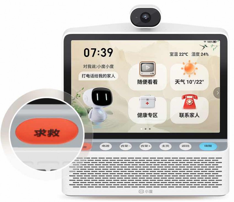 因此,在产品的设计中,小度智能健康屏增加了音量调节、返回主页、唤醒小度等大字实体按键,更有醒目的求救按钮,紧急情况下老人不仅可以喊“小度小度,救救我”,还能一键呼救。针对操作界面,也扩大了30%热区容错边界、增加3mm帕金森颤抖边缘,每次点击都有「缓冲垫」。