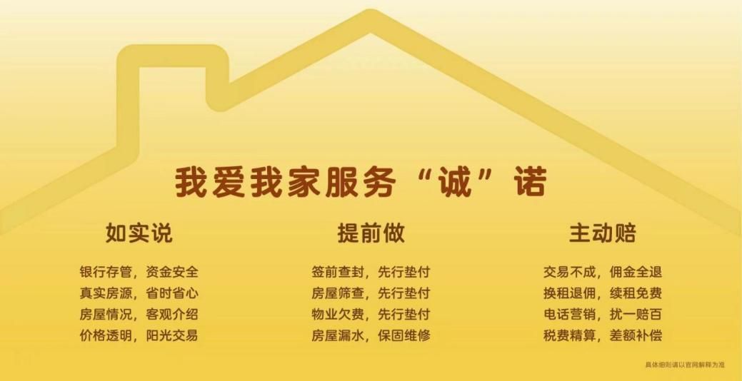 服务永无止境,为全方位筑牢“防护网”,进一步保障客户权益,我爱我家从消费者最关心的信息咨询、服务体验、权益保障三个层面切入,又提出了“如实说”“提前做”“主动赔”九字真言。“如实说”要求经纪人客观介绍真实房源,遵守价格透明原则,并通过银行存管保障客户资金安全;“提前做”要求经纪人想在先、跑在先、办在先,承诺签前查封、房屋筛查、物业欠费均可为消费者先行垫付;“主动赔”不仅包括为交易不成的消费者退佣、为换租消费者退佣、为续租消费者免佣,而且承诺当经纪人计算税费有误时补偿消费者差额。可以看得出真诚服务是我爱我家这家企业的基因。