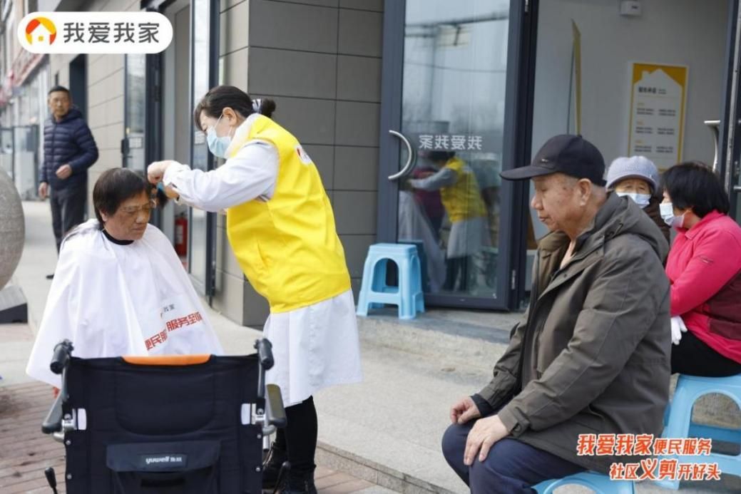 “我爱我家便民服务,社区义剪开好头”公益理发活动现场